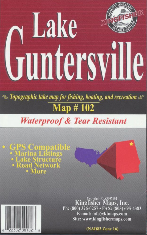 Lake Guntersville, Alabama Waterproof Map (Kingfisher)