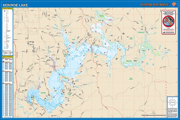 Monroe Lake, Indiana Waterproof Map (Fishing Hot Spots)
