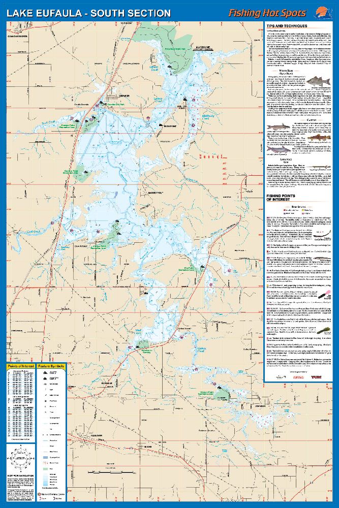 Lake Eufaula (South Section), Oklahoma (South of Hwy 9 Bridge) Waterproof Map (Fishing Hot Spots)