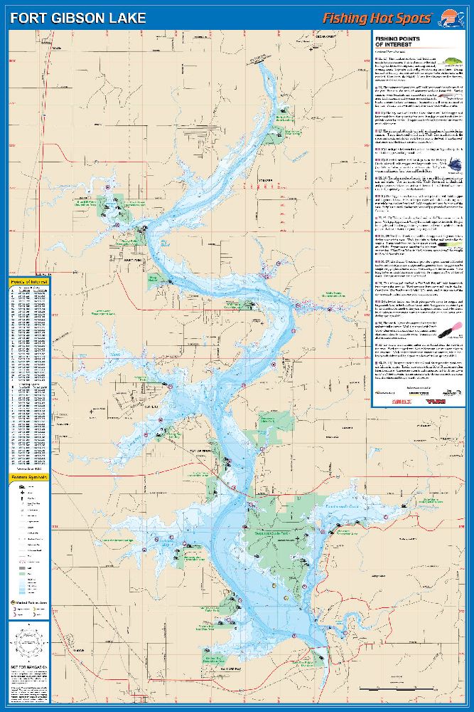 Fort Gibson Lake, Oklahoma Waterproof Map (Fishing Hot Spots)