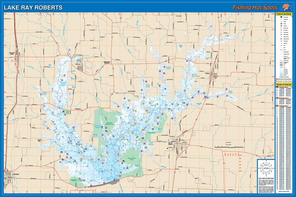 Lake Ray Roberts, Texas Waterproof Map (Fishing Hot Spots)