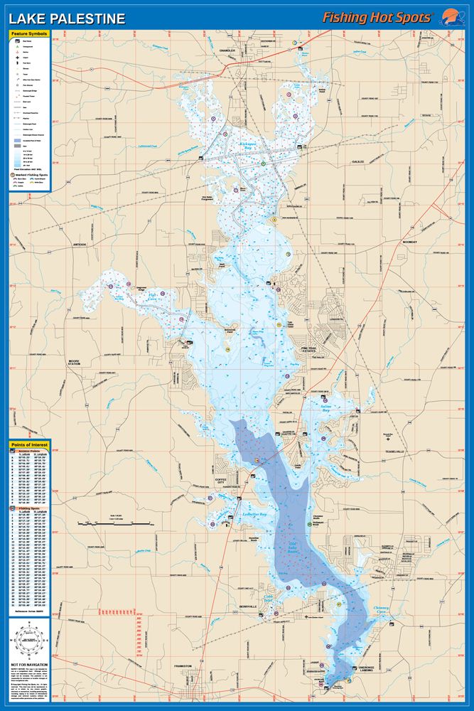 Lake Palestine, Texas Waterproof Map (Fishing Hot Spots)