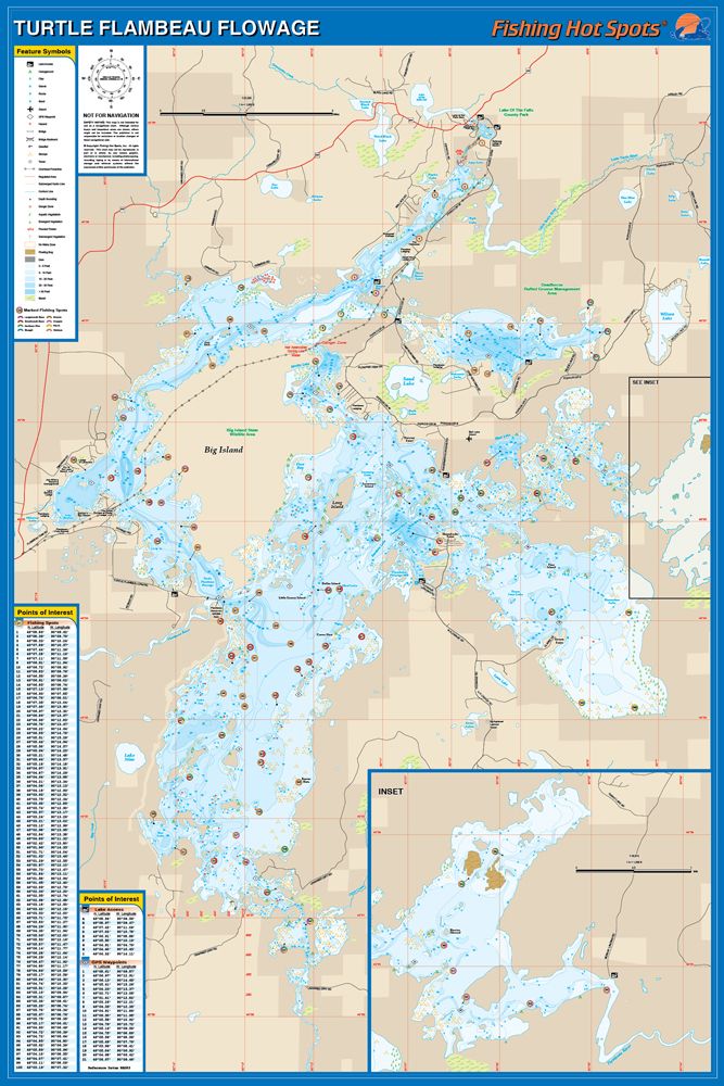 Turtle-Flambeau Flowage (Iron County), Wisconsin Waterproof Map (Fishing Hot Spots)